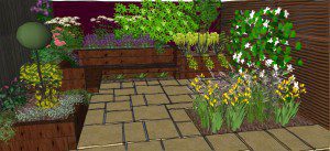 The left hand side of the space will include a bed dedicated to herbs planting, while a flush bed running parallel to the house near the back door will feature grasses and other ‘airy’ plants to add layering and perspective to the design.