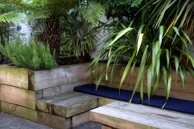 Raised beds are a good way to add form and structure to your garden. They can be constructed a variety of materials, from bricks or blocks to timber materials such as railway sleepers, wooden stakes and even old pallets. The beauty of raised beds is they do add an extra dimension to your garden and can also help to height to an otherwise two dimensional space. Once erected, depending on the material used, you can paint them, tile theme, cover them and if you use gabions (strong, wire-mesh boxes), you can even grow plants through them or fill them with just about any decorative material you like.