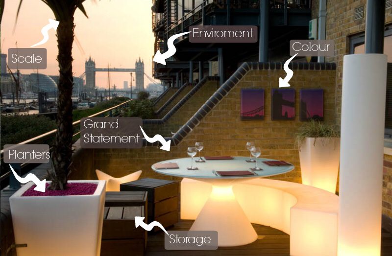 With space at a premium, being a London roof garden designer is a much sought after trade. We are often called upon to provide solutions for roof spaces – with a variety of restrictions it can be more important to use the services of a professional in such a space than in a larger plot. If you can’t stretch the budget to working with a garden design company, we give you a few pointers to all some umph to your balcony.