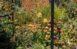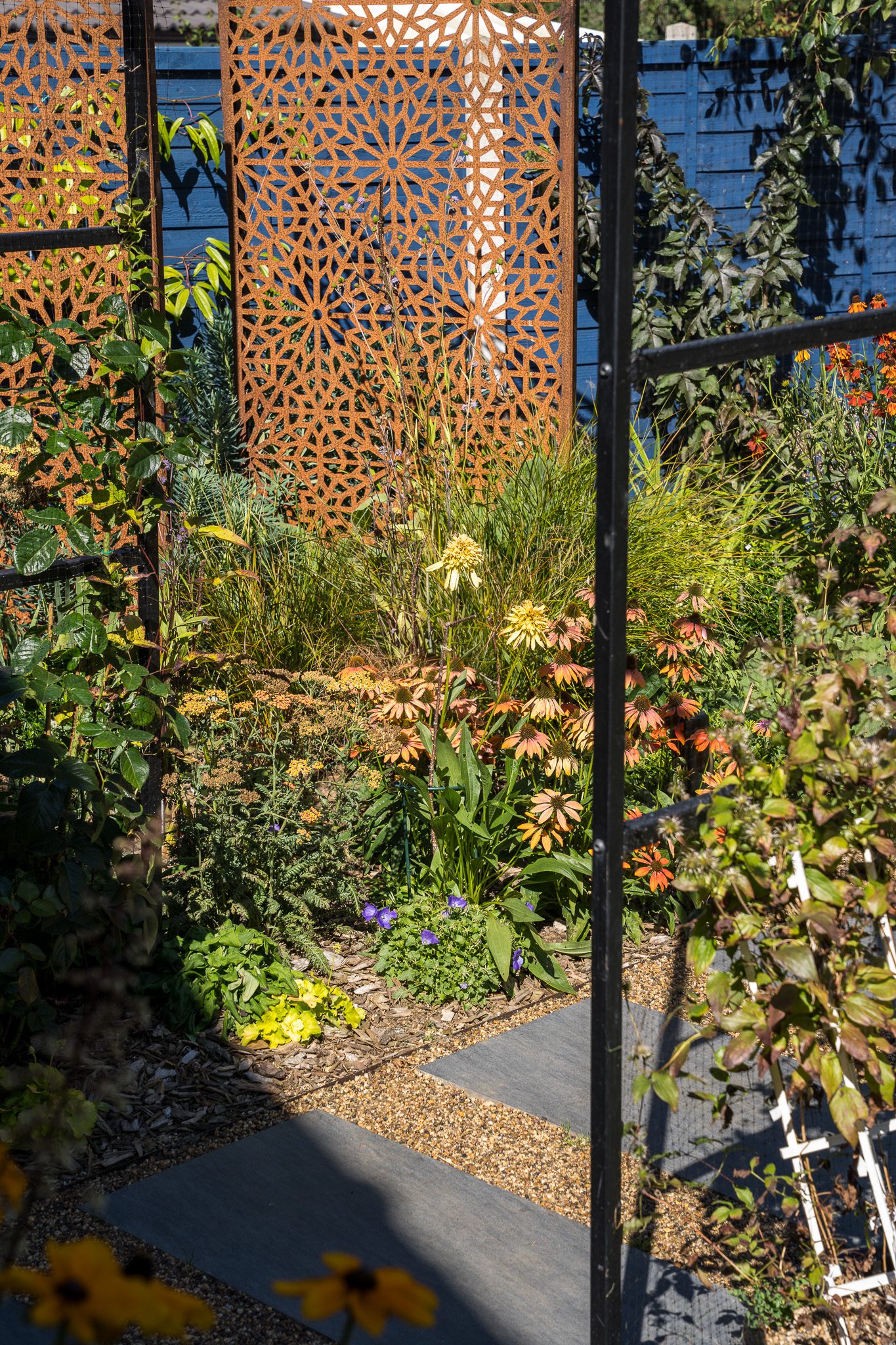 The planting scheme will feature a background of evergreen shrubs mixed with perennials in a colour palette including zingy limes, oranges, purples and whites to give year-round interest.