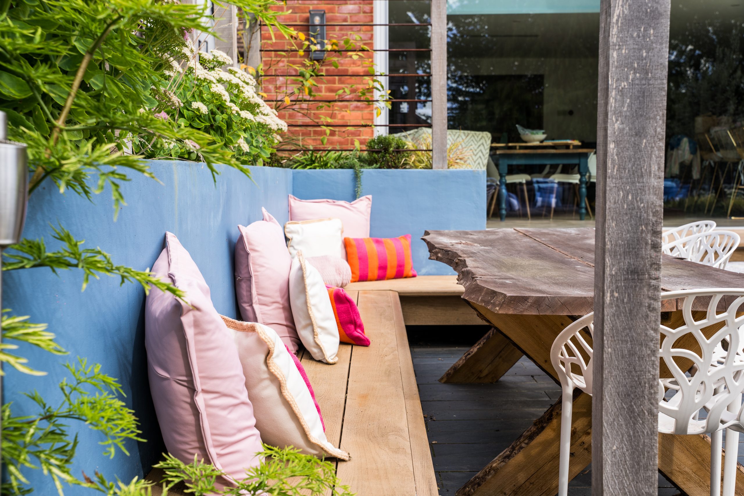 Directly outside the patio doors, the new design features a composite decking walkway that runs along the full width of the house. This deck links the home to the outdoor space, creating a cohesive transition between indoors and out.