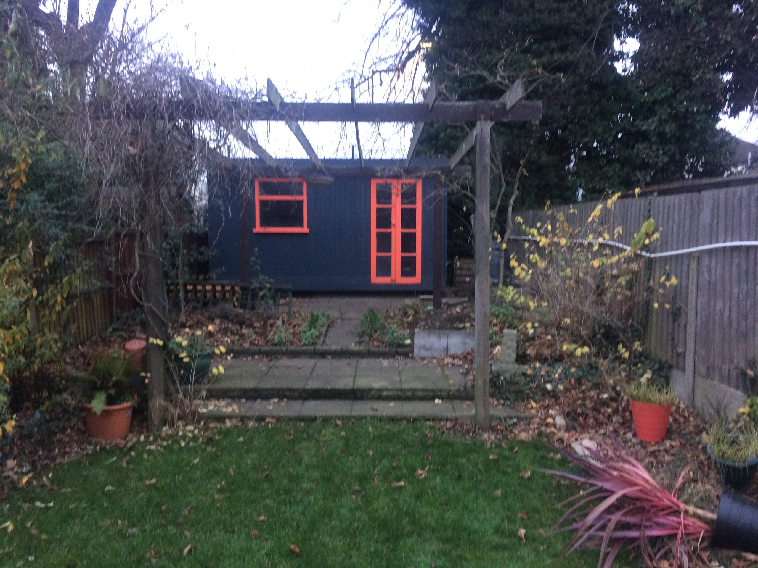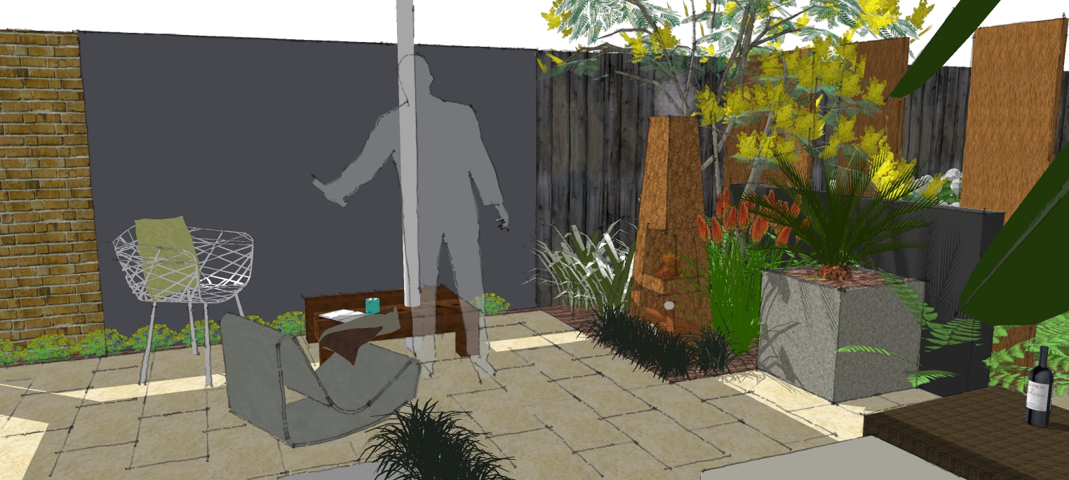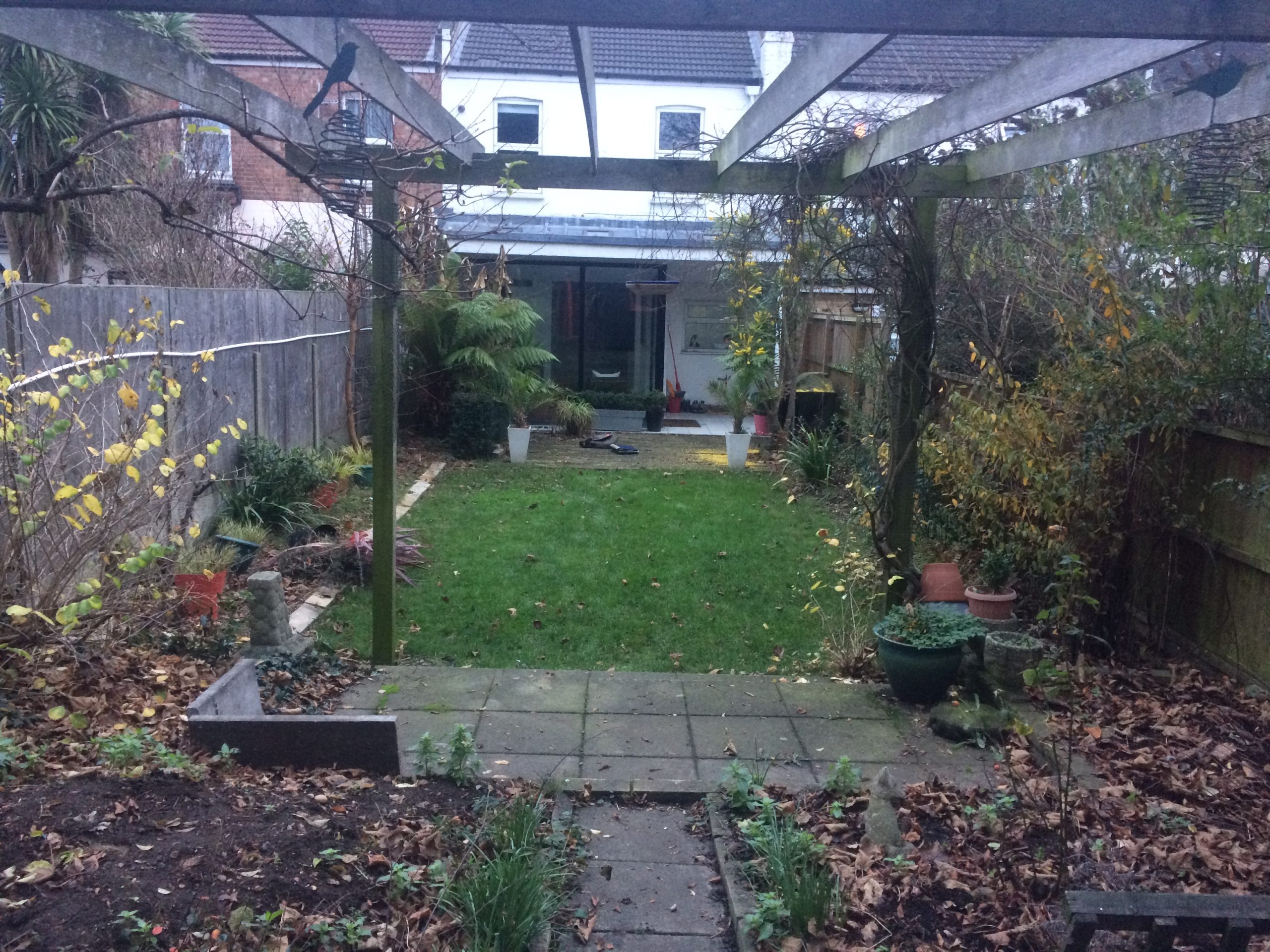 This garden, in West Ham, has been well used and much loved. It has a few thriving established plants in it, although the space is generally somewhat overgrown and dilapidated. The area towards the back of the garden is slightly raised and dominated by a large timber shed. The client would like to improve the view from the interior of the house with something more stylish and desirable. The inside of the property has good symmetry with retro undertones and the client would like that reflected in the outside space. Some of the larger shrubs should be retained.