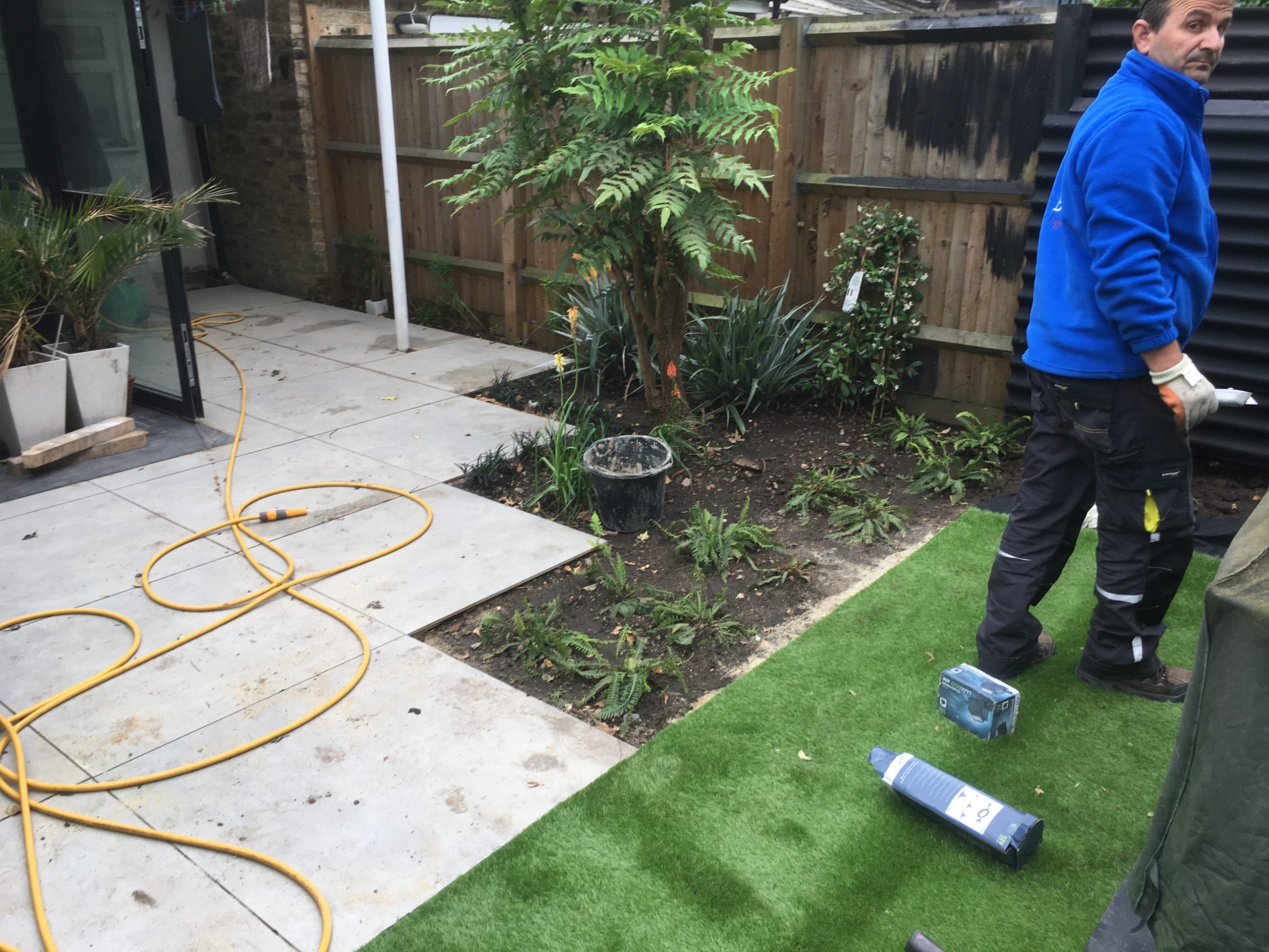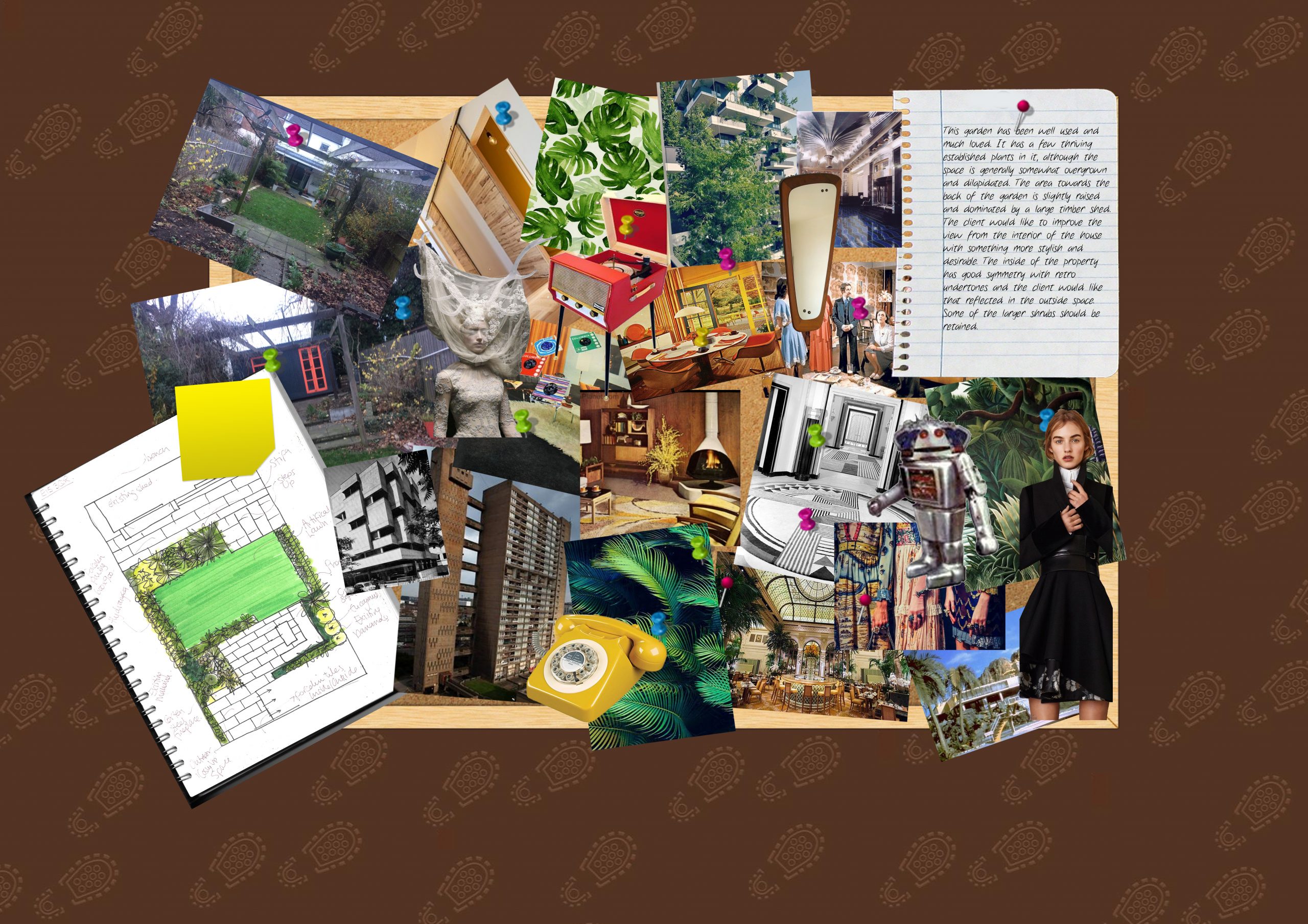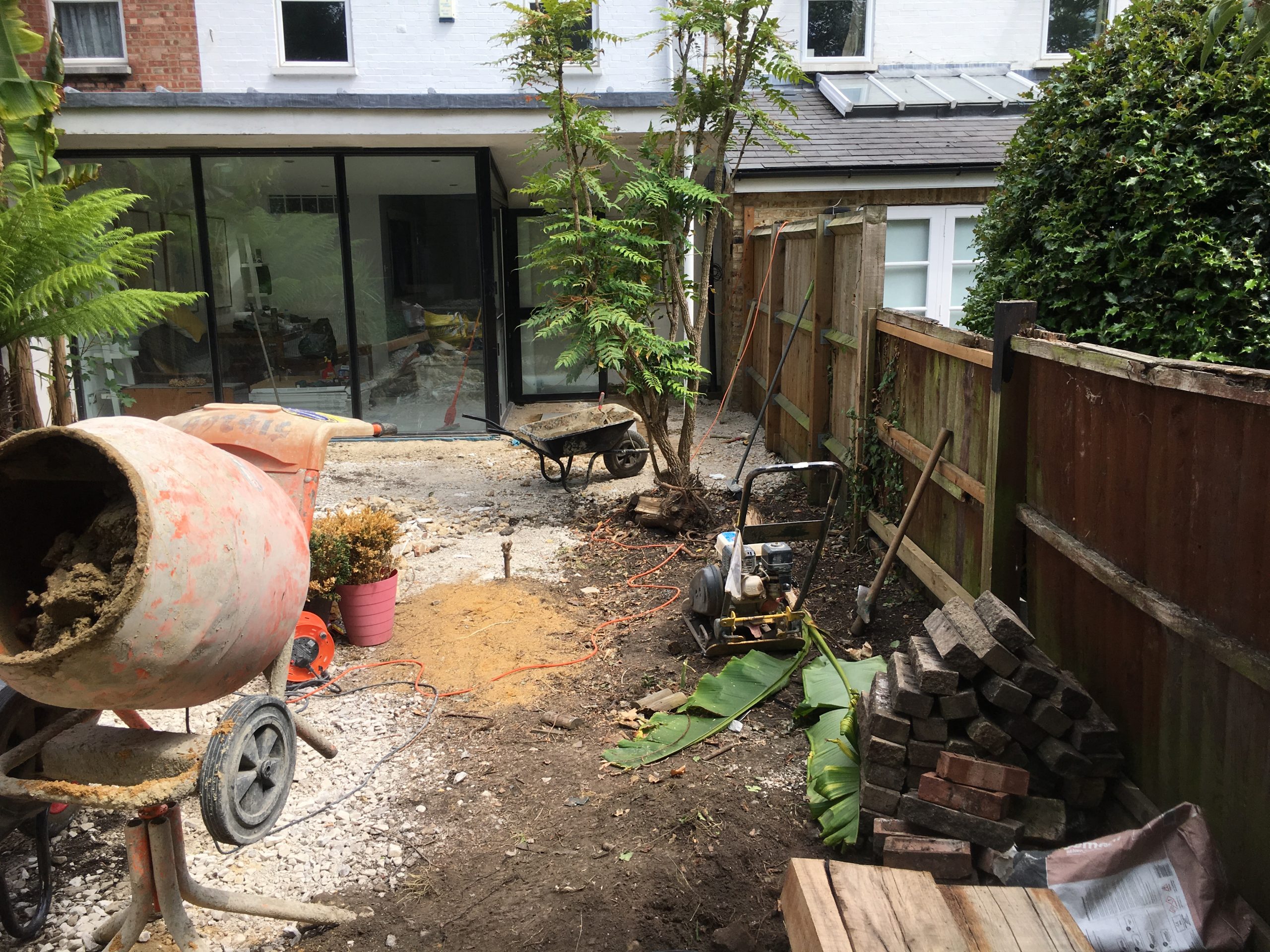This garden, in West Ham, has been well used and much loved. It has a few thriving established plants in it, although the space is generally somewhat overgrown and dilapidated. The area towards the back of the garden is slightly raised and dominated by a large timber shed. The client would like to improve the view from the interior of the house with something more stylish and desirable. The inside of the property has good symmetry with retro undertones and the client would like that reflected in the outside space. Some of the larger shrubs should be retained.