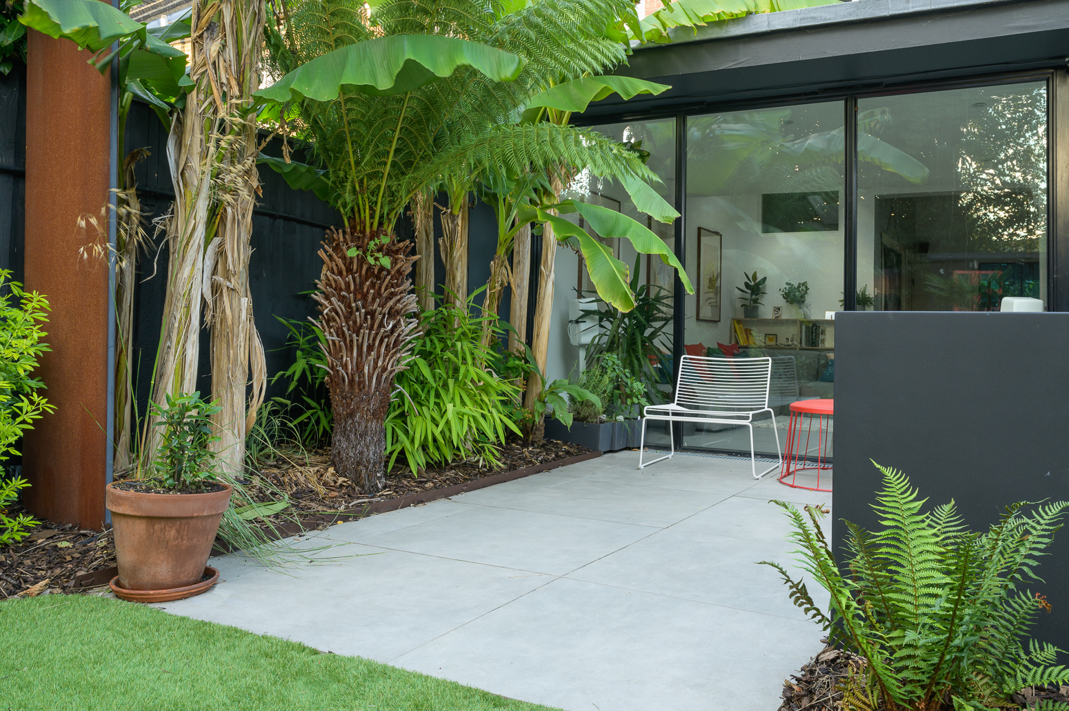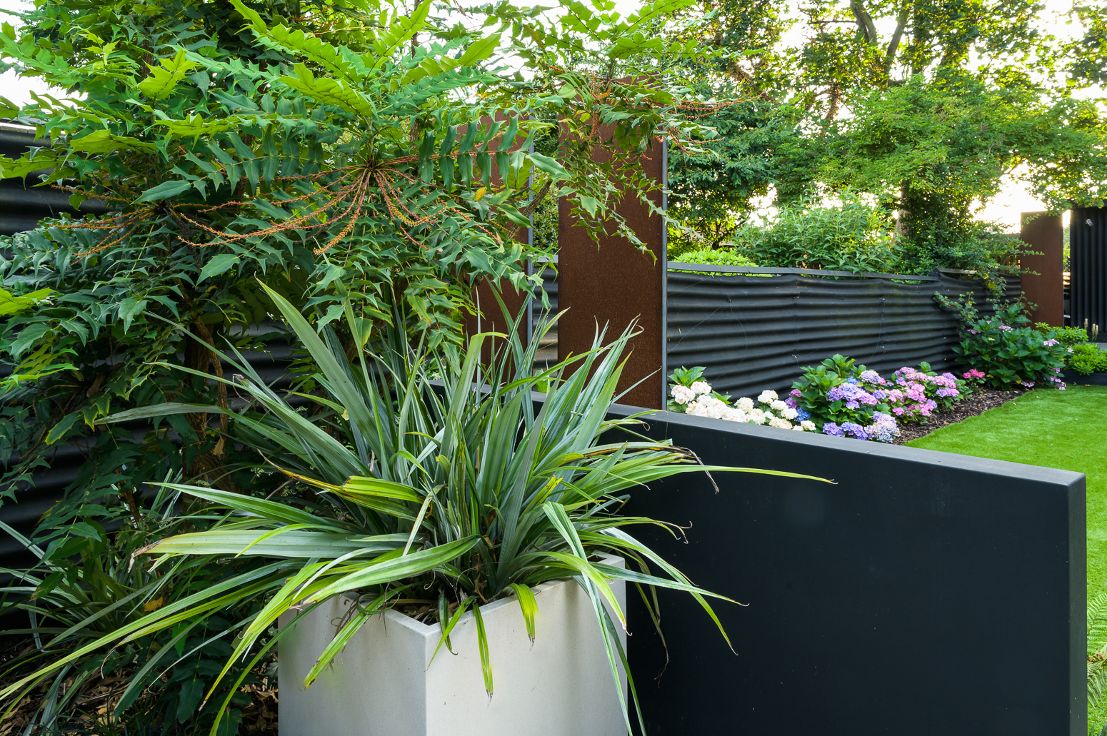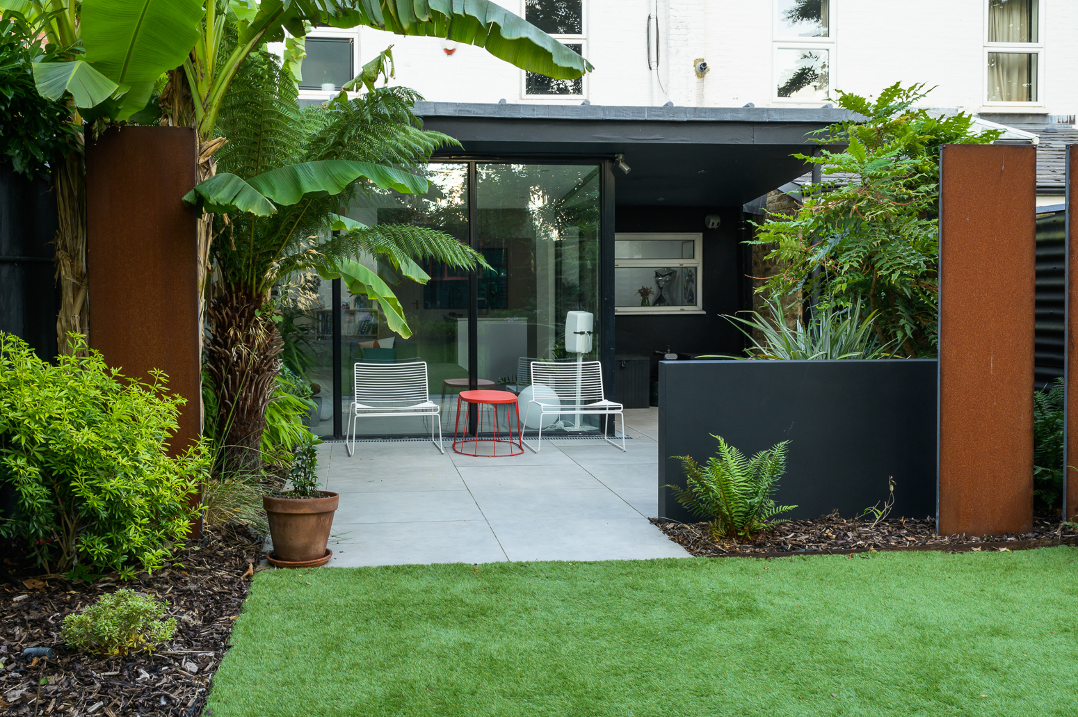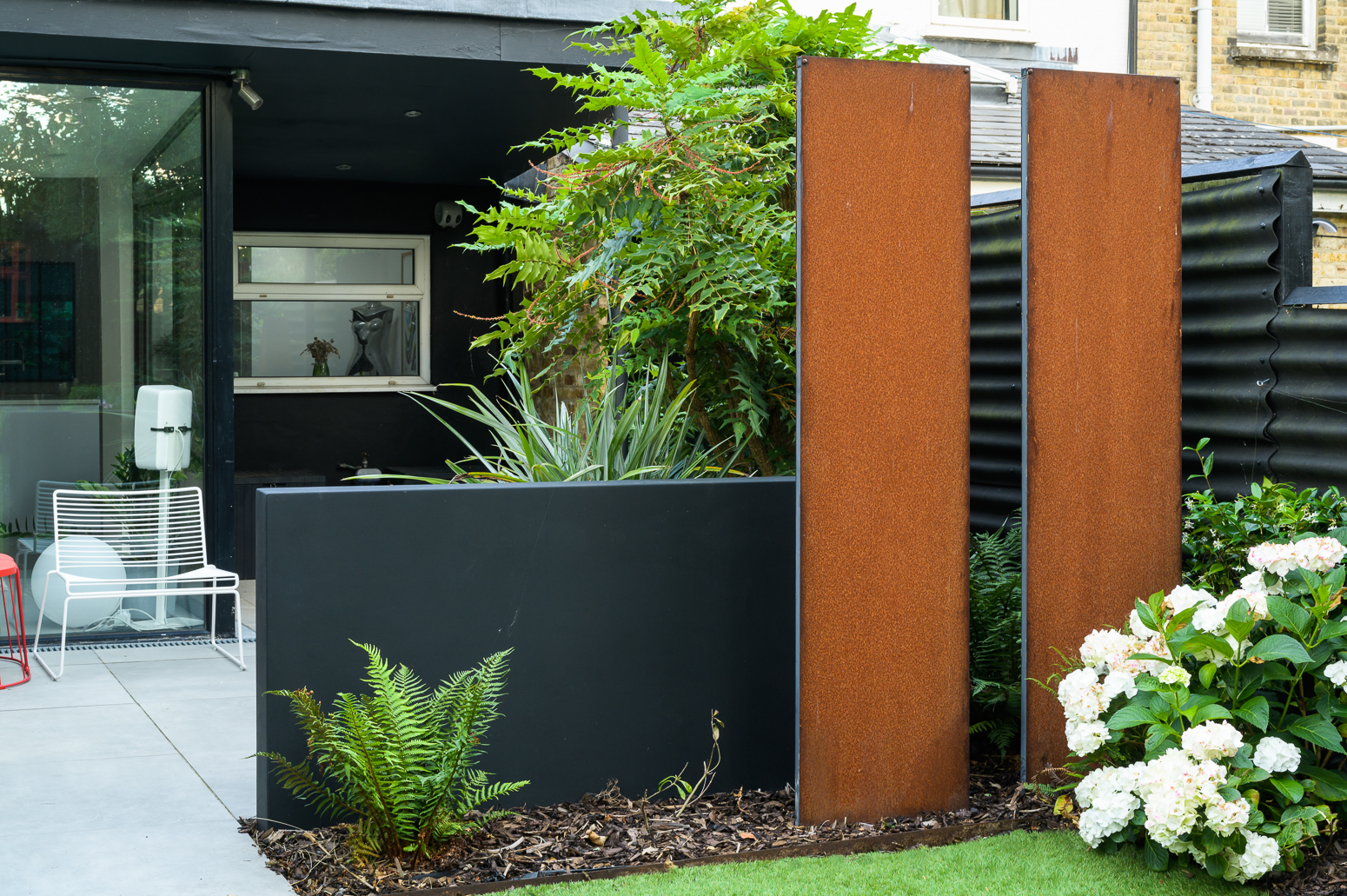 Retro-Inspired Garden Redesign with Corten Steel Features