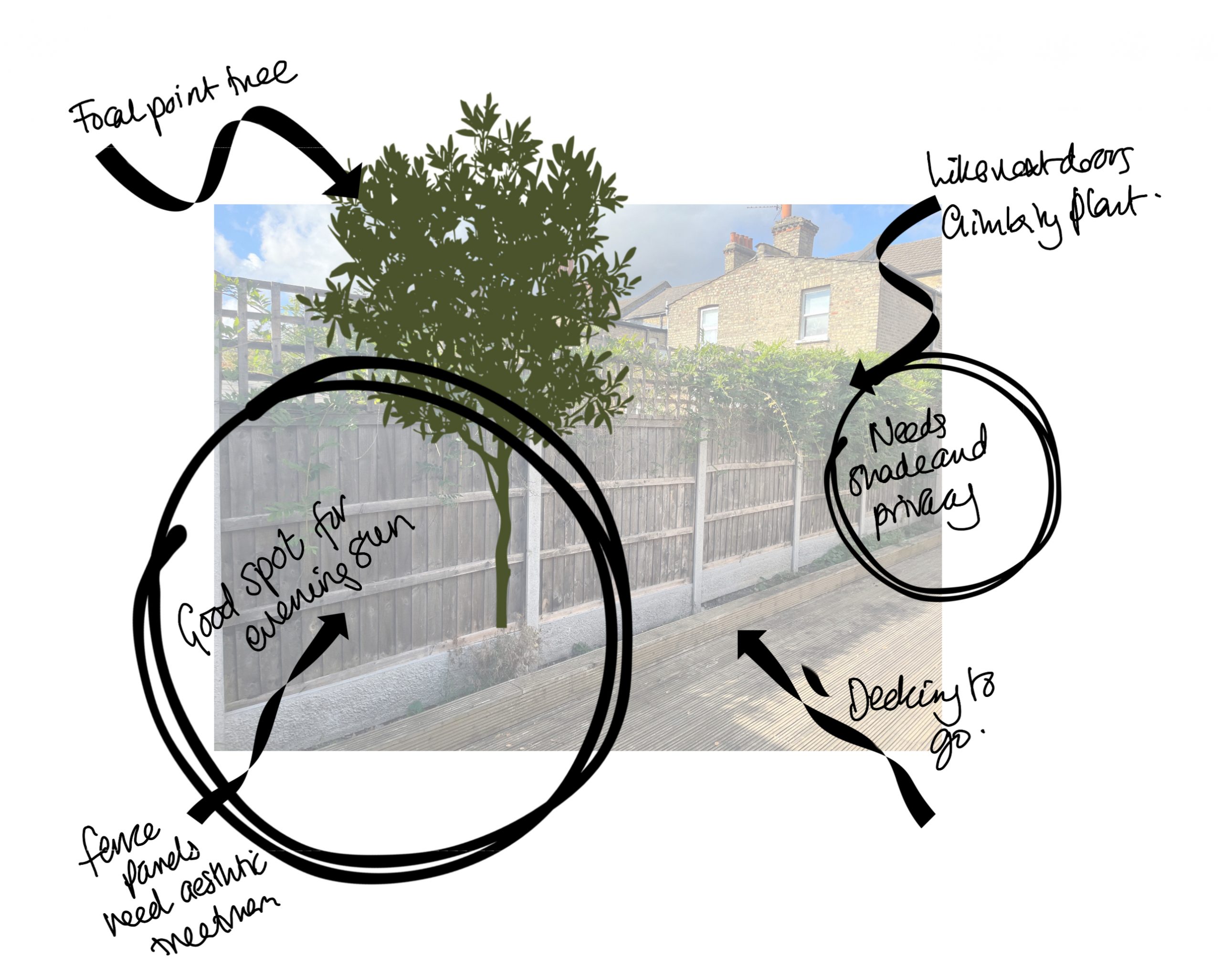 The garden is a sun trap and can get very hot, so the clients would like provision for some shade in the design.