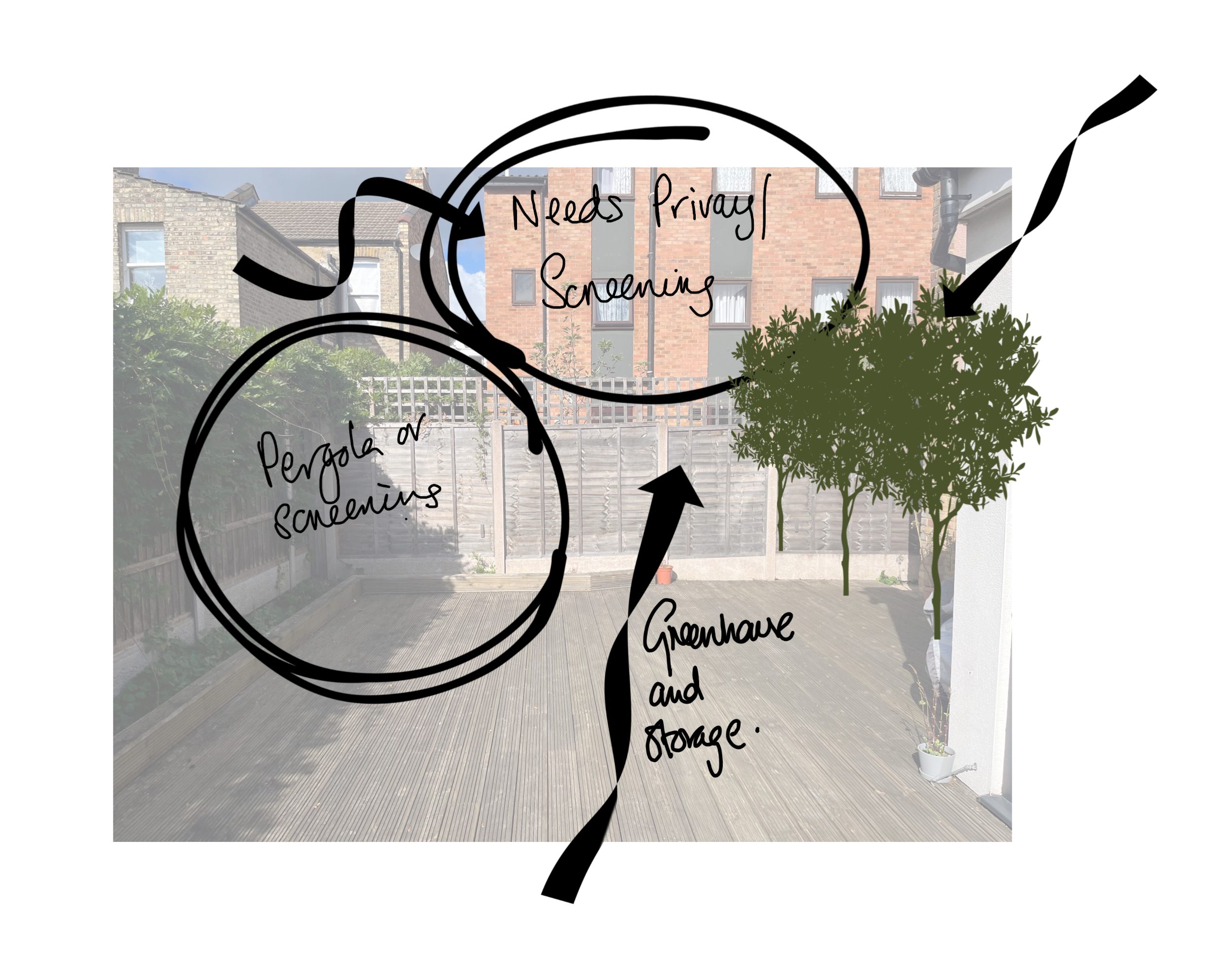 The clients have also requested some treatment for the existing boundaries to create a more aesthetically pleasing backdrop to the space.